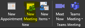 1. Using the Outlook application, select "New Meeting"